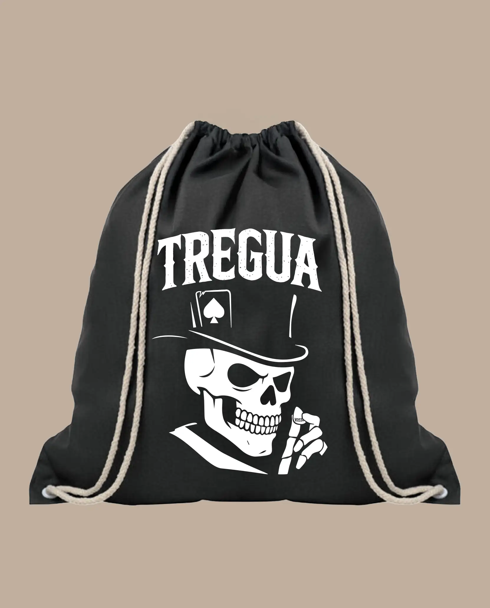 Llévate tu música y tu estilo a todas partes con la mochila de Treguarock. Hecha en resistente tela negra, con el emblemático logo calavera estampado y cordones gruesos para mayor comodidad.